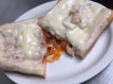 French bread spread with our homemade garlic butter mix, topped with sliced provolone cheese and sliced tomatoes.